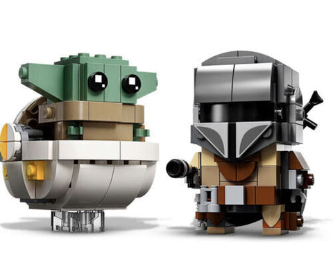 Celebrate Star Wars with the LEGO 75317 BrickHeadz The Mandalorian & The Child set, now offered with damaged packaging. This collectible 295-piece set features detailed buildable models of Din Djarin (The Mandalorian) with a blaster rifle and pistol, and Grogu (The Child) nestled in a transparent hover pram.